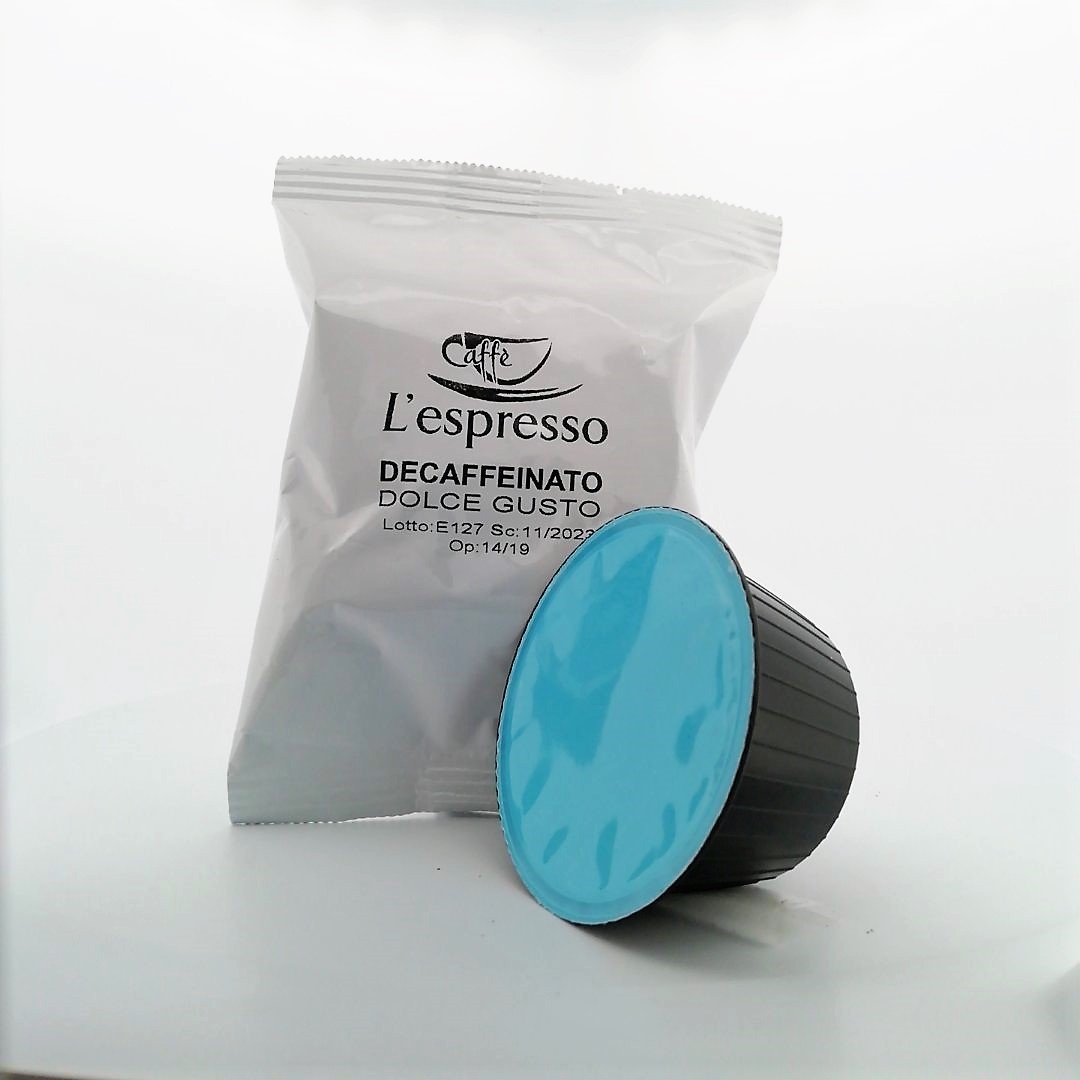 60 Capsule “L’Espresso” decaffeinato compatibile “Dolce e Gusto” imbustate singolarmente.